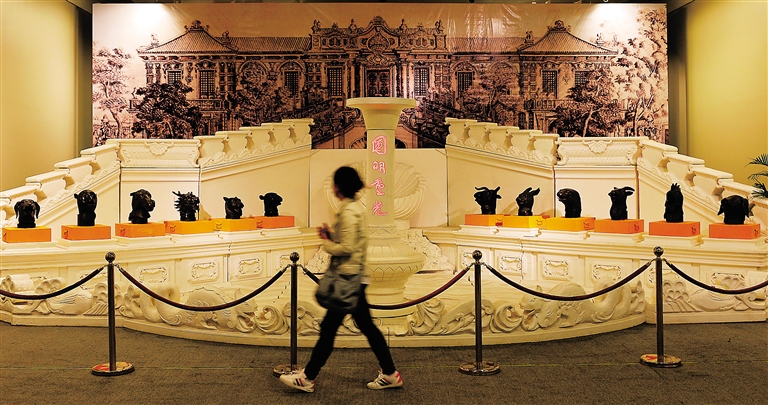 据北京海淀区圆明园管理处主任曹宇明介绍,此次展品包括圆明园海晏堂1:2模型及12生肖兽首复制品、以“正大光明”为代表的木雕模型、铜鎏金无量寿佛、云蝠钮葫芦形闲章、中式及西洋建筑琉璃构件、玉雕圆明园全景图等。此外,还特别展出数字圆明园研究的丰硕成果,以全息柜展示万方安和、谐奇趣、大水法等景观的复原影像,同时还配合播出数字圆明园影片。