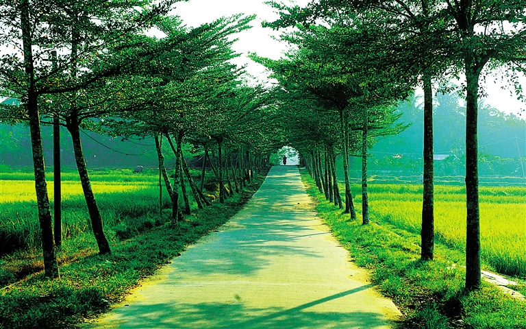 三亚市天涯区华丽村的乡村公路两侧,去年种上了漂亮的小叶榄仁,令这个美丽乡村成为许多骑行爱好者向往的乐园。据了解,2014年,我省生态文明建设成效显著,植树造林20万亩,环境质量继续保持全国一流。本报记者 苏建强 摄