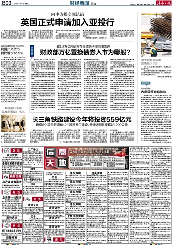 海南日报 财经新闻综合 015 2015-03-131 2015年03月13日 星期五