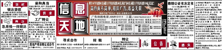 地址:海口市金盘路30号 邮编:570216 总值班:66810666 广告许可证:琼工商广字015号 广告部:66810888 发行部:66810999 群众工作部:66810660 邮发代号:83—1 报费:每月三十元 零售每份一元 昨天开印时间2时35分 印完:4时45分 海南日报印刷厂印刷