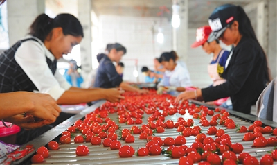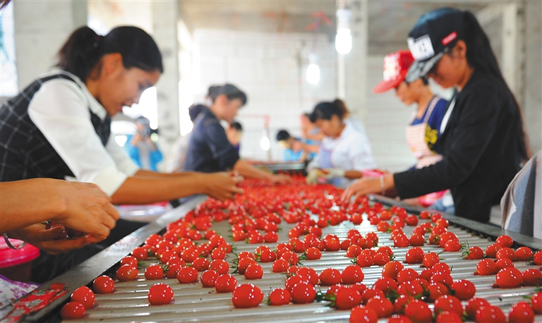 ➡ 3月16日,陵水岭门镇一合作社的女工们正在分捡圣女果。种植户陈金梁今年采用海垦农资推广、从欧盟引进的全球良好农业规范标准,圣女果品质更优,亩产值由5000元增至8000元。本报记者 苏建强 摄