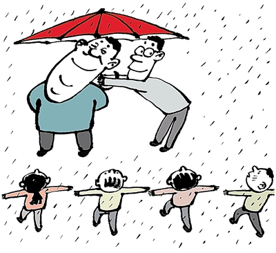 且不说同一件事情两种回应,自相矛盾,令人生疑,单就其中任何一种解释都是站不住脚的。设备需要保护,学生就不需要保护?老领导身体弱,学生就可以经受风吹雨打?试问这是哪门子的关心?这种“打伞看学生在雨中做操”式的关心,是彻头彻尾的形式上的关心,脱离了实际,也脱离了“下一代”。究其原因,是相关领导权力思维在作祟,没有摆正自己的位置;同时,该学校领导也没有以学生为本,而是以权力为中心,才会做出让学生在雨中为领导表演的事情来。这正是: