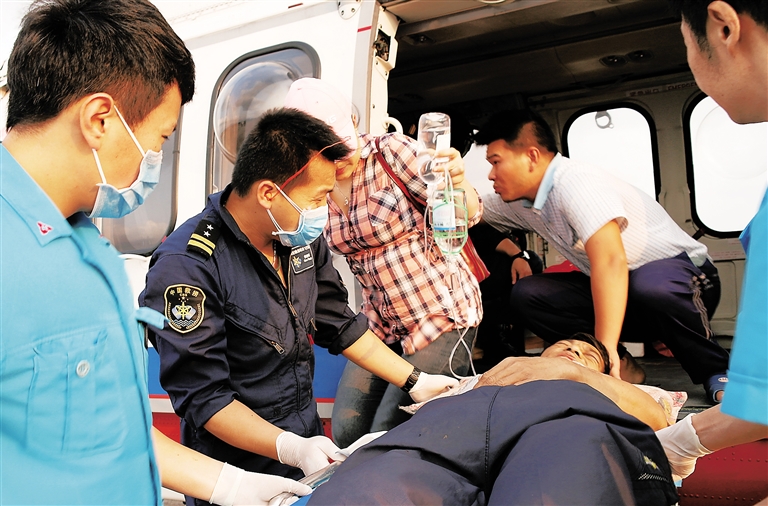 据与患者一同出海的陈为喜介绍,上午9点半左右患者出现吐血症状,但因海上手机无信号,一直拖到10点半才打出求救电话。中午12点半,患者抵达永兴岛,三沙市人民医院的医护人员马上开展抢救,赢得了宝贵的救治时间。