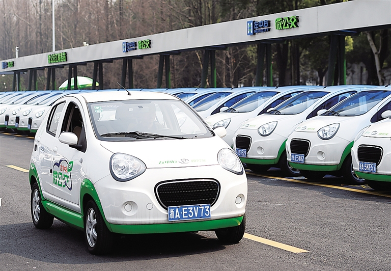 3月17日,一辆“微公交”纯电动汽车正在驶出江陵路站。 3月16日起,杭州地铁1号线江陵路站大型停车场内的“微公交”纯电动汽车站点正式投入运营。这是目前杭州规模最大的“微公交”平面租赁站,可提供60辆微型纯电动汽车,并首次实现地铁与“微公交”的接驳。 杭州“微公交”纯电动汽车分时租赁业务从2013年9月开始试运营,目前已有“微公交”9851辆。市民可凭身份证、驾驶证租赁“微公交”,租赁方式有时租和年租两种,车型有两座(20元/小时)和四座(25元/小时)两种可供选择,并可在杭州任意“微公交”站点归还。