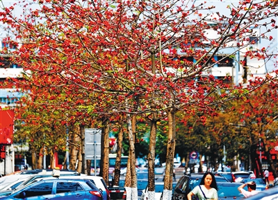 海口木棉怒放街头