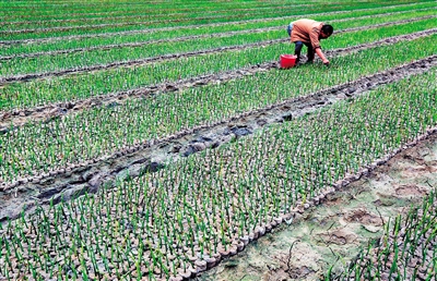3月14日,儋州市白马井镇藤根村的废弃老盐田里,红树林技术人员正在培育红树林苗木,一株株红树苗展露新芽。