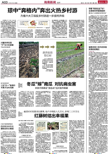 毛感乡地处生态核心区,而且还是保亭的水源地,生态保护任务艰巨,可供耕作的土地很少。种植红藤是毛感乡走出的一条发展林下经济特色道路,带动不少农民增收致富。“目前,毛感乡种植的红藤面积已经超过5000亩,去年红藤果产量在50吨左右。”毛感乡政府主要负责人告诉记者,他们将进一步引导农民发展特色林下经济,种植红藤、益智等。(本报保城3月17日电)