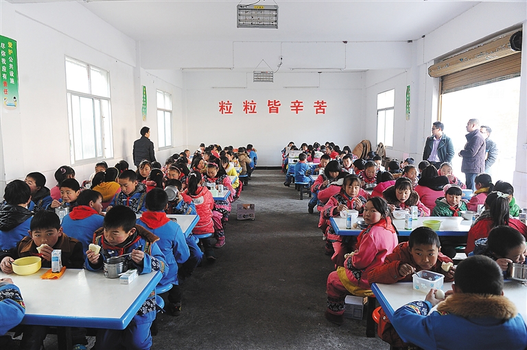 学生在校吃上营养午餐