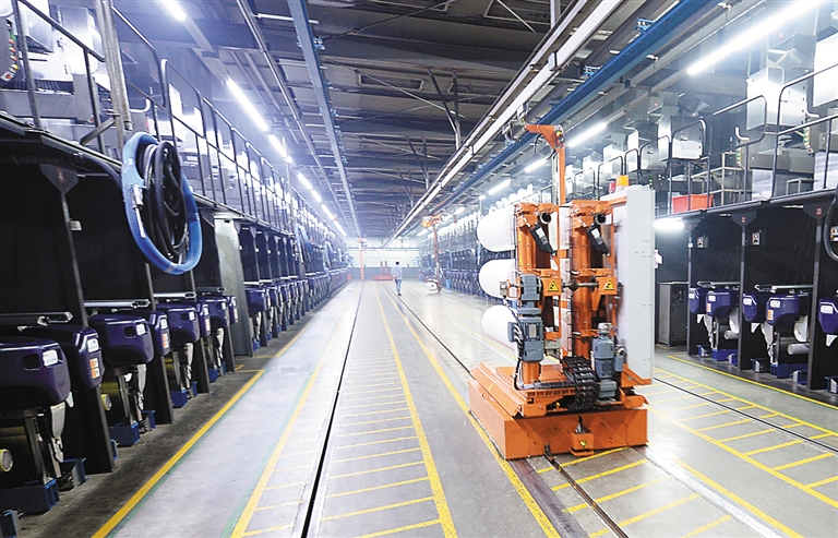 3月17日,杭州市萧山区的一家“机器换人”后的化纤企业车间内,一台机器人在车间内运送成品。 新春伊始,走进浙江制造业的车间,往日工人们熙熙攘攘、热火朝天的工作场面正在悄然变化,许多企业车间内变得安静整洁,只有三三两两的工人,或操作电脑,或检查成品,大批的自动化“机器人”代替操作工,24小时工作着。 这场被称为“工业4.0”的革命,源于2012年底浙江省开始启动的“机器换人”计划。作为中国的制造业大省,据浙江省经信委的统计,2005-2013年,浙江规模以上工业企业的人均劳动报酬年均增15.8%,总量和增幅均居全国前列。用工成本的攀升挤压着制造业的利润,结构性用工荒也让企业为难。2013年5月,浙江正式提出“555”推进计划,意欲在未来5年,通过每年实施5000个项目,投入5000亿资金推进“机器换人”。2013年,浙江省减少普通劳动用工70万人;2014年减少简单劳动为主的操作工人61万人,万元工业增加值用工人数下降8.6%。2015年以来,一些企业用工需求进一步减少。浙江,这个制造业大省的车间正在逐步走向“无人化”。 新华社记者 王定昶 摄