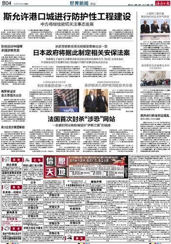 海南日报 世界新闻动态 012 2015-03-191 2015年03月19日 星期四