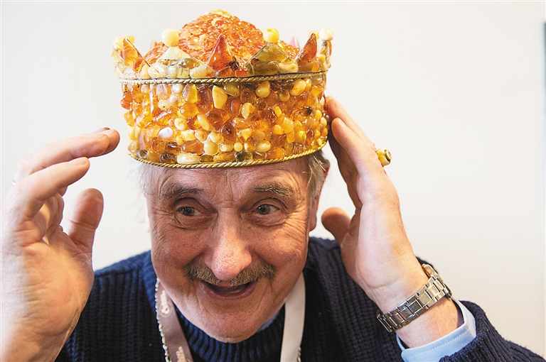 3月18日,在立陶宛首都维尔纽斯,一名参展商展示自己手工制作的琥珀王冠。 “琥珀之路”国际琥珀展当日在立陶宛首都维尔纽斯开幕。“琥珀之路”是波罗的海地区最大的国际琥珀展之一,每年举办一次。本届琥珀展为期四天,吸引了来自立陶宛、拉脱维亚、波兰、俄罗斯、乌克兰和中国等国的参展商参展。