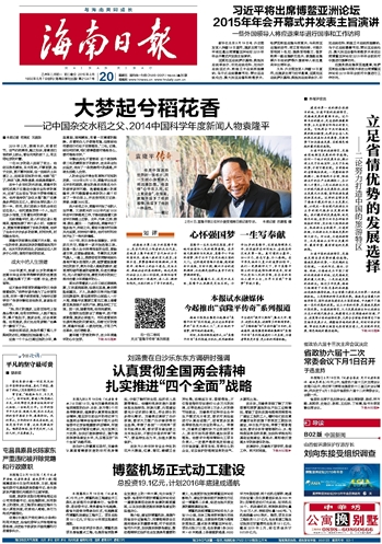 海南日报 头版 001 2015-03-201 2015年03月20日 星期五