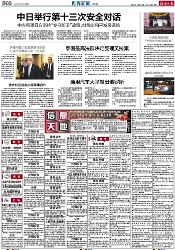 海南日报 世界新闻动态 015 2015-03-201 2015年03月20日 星期五