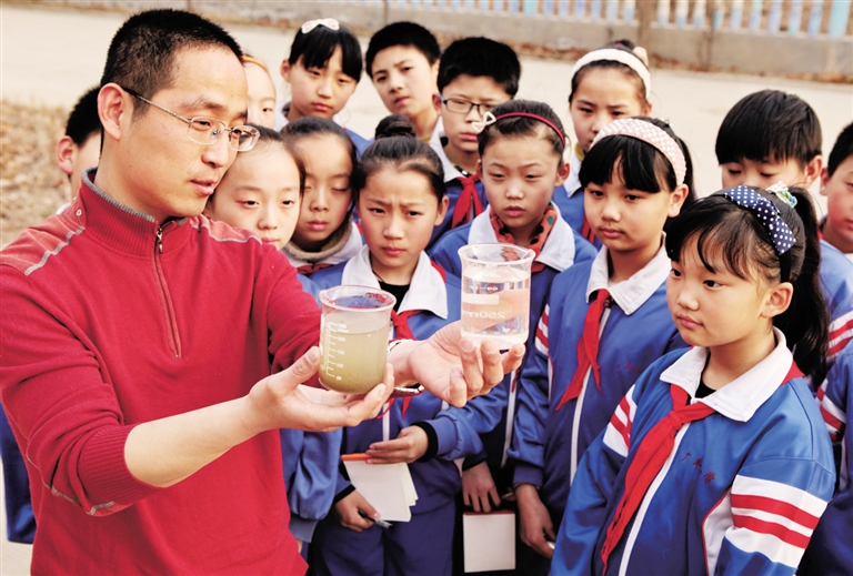 3月21日,河北省广平县团委组织该县广平小学学生走进污水处理厂,了解污水处理过程,增强节约用水意识,迎接3月22日“世界水日”。 新华社发