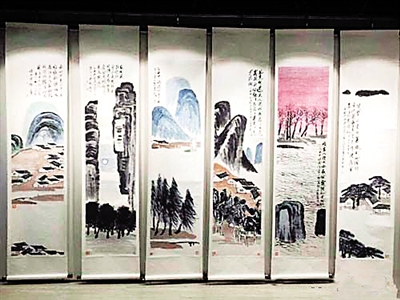 此次是这件作品近60年来首次进行公开展览。《山水十二条屏》由齐白石创作于1925年,时年62岁,是送给民国年间北京名医陈子林的贺寿礼,形制划齐规一,极为难得。这也是他“衰年变法”第四个年头里创作的山水作品,可以说是白石老人风格转型期里最具代表性的山水作品,同时也是目前可流通的尺幅最大的山水十二条屏。每一条屏形制划齐规一,分别为《江上人家》、《石岩双影》、《板桥孤帆》、《柏树森森》、《远岸余霞》、《松树白屋》、《杏花草堂》、《杉树楼台》、《烟深帆影》、《山中春雨》、《红树白泉》、《板塘荷香》。