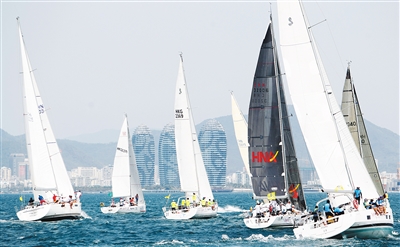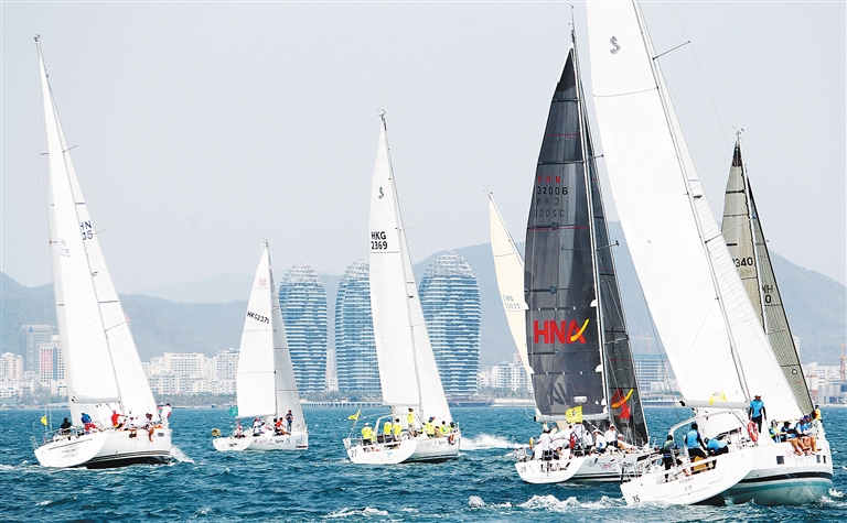 当日,2015第六届环海南岛国际大帆船赛开启第一赛段三亚—西海岸—海口的征程,全程约300海里,预计24日抵达海口。 本报记者 宋国强 摄 (相关报道见A10版)
