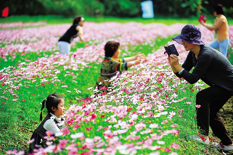 嘉积镇龙寿村委会支部书记李树告诉记者,龙寿洋花海由政府和农民合作建设,总投资70多万元,花海所占地均是该村村民农田,花海在每年的春节期间绽放,花期可持续到4月初,花期结束后,所占农田继续播种其他农作物,第二年继续栽种花草。如今,花海已成为龙寿洋国家农业公园锦上添花的佳作,春节期间花海刚绽放时,每天接待游客三四千人。