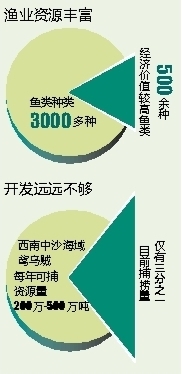 “西南中沙地处热带海洋,海洋鱼类生长速度快,繁殖速度也快。以蓝圆鲹为例,这种鱼喜集群觅食,且繁殖力超强、生命周期短,如果不捕捞,也会很快死亡。”刘维说,目前,我国对于南海渔业资源的开发远远不够。以西南中沙海域鸢乌贼资源为例,估计每年可捕资源量达200万-500万吨,但目前我们的捕捞量仅有三分之一。