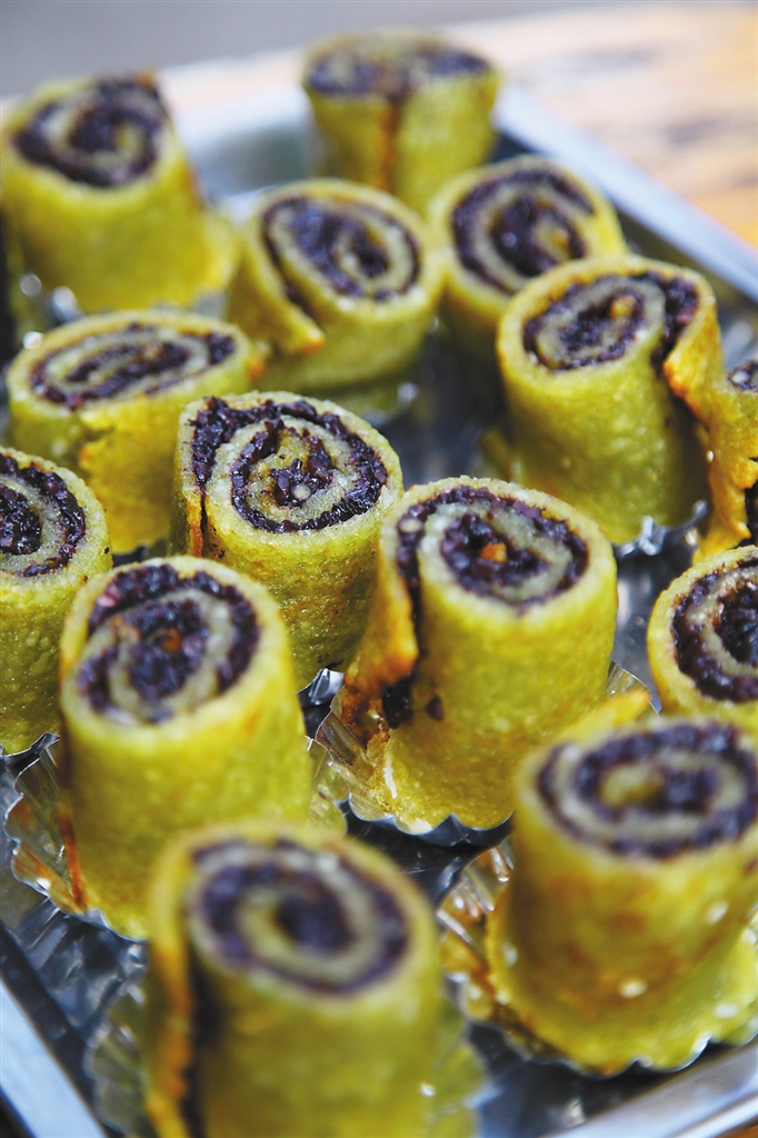 第一次来到琼海的武汉游客吕潘来到琼海银海杂粮一条街,便轻车熟路地点了椰子粿、鸡屎藤粿仔、椰香九层糕等杂粮。“我在网上看到过,这些都是琼海十佳名小吃。”
