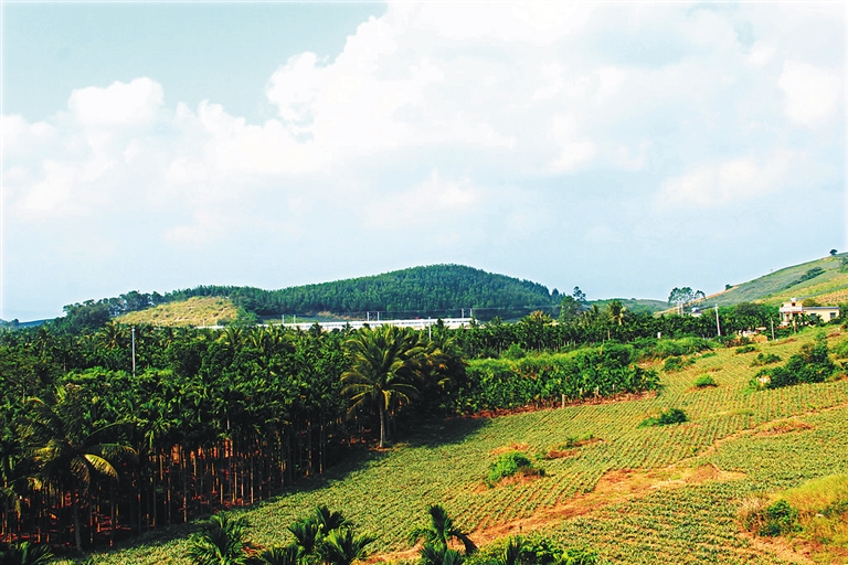 我们走进菠萝种植大户李会平家。他热情地接待了我们,茶几上已准备好几盘新鲜的、香喷喷的自产菠萝。李会平从2010年起,种植菠萝200多亩,年产量达到100多万斤,远销长春、吉林、北京、天津、上海、广东等地,年收入150多万元,利润70多万元。他满脸笑容地对我们说,幸亏政府引导农民更新观念,进行了产业结构调整,不然村民还是走老路,还是种那几亩水稻、坡稻、甘著之类作物,产量不稳,一年到头只为填饱肚子奔忙。那想到今天住洋楼,出门有小车,道路硬化,四通八达!