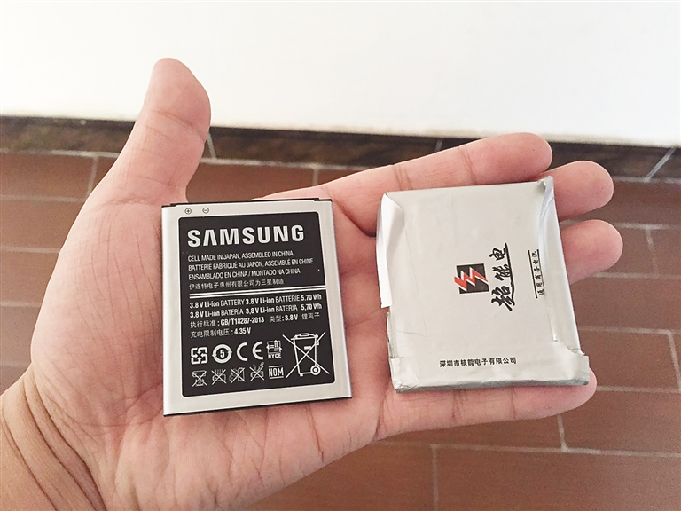 记者按照读者提供的线索,来到海口市海秀东路DC电脑城。在一楼的一家手机店铺,记者以三星手机电池坏了为由,询问是否有手机电池销售时,店主表示,该店除了原装电池,还有一种自行制作的电池,每块30元。