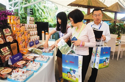 南国食品公司董事长刘汉惜介绍,海南南国食品公司作为博鳌亚洲论坛年会供应商,不仅为海南省推出的13项主题活动之一“海南风情美食园”提供特色产品,还为与会嘉宾准备了2000份精美礼品。据介绍,南国十分重视这次活动,提前做了很多市场调查,最后挑选了四款在市场上消费者钟爱度最高、最具海南特色的产品。