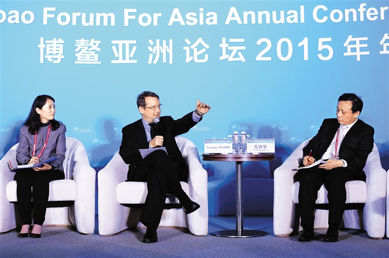 | 3月26日,博鳌亚洲论坛2015年年会题为《互联网金融:自律与监管》的分论坛上,陆金所董事长兼CEO Gregory D Gibb在发言。本报记者 张杰 摄 |