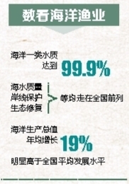 参与“21世纪海上丝绸之路”建设,呼唤着海南用好、护好这片海。海水质量、岸线保护、生态修复等均走在全国前列,海洋一类水质达到99.9%,始终处于全国领先水平:海洋生产总值年均增长19%,明显高于全国平均发展水平……海南海洋经济发展的这些喜人成绩,给了海南人管理这片海洋的更大自信。