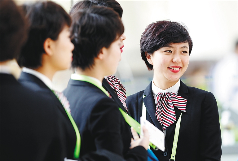 3月27日,来自钓鱼台国宾馆的10多名服务人员出现在博鳌亚洲论坛大酒店大堂。据悉,她们将为与会嘉宾提供高标准服务。