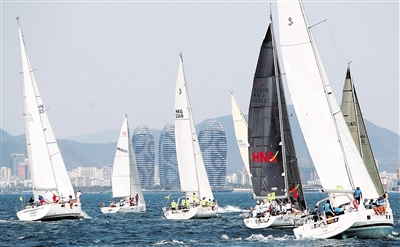 本届海帆赛3月21日在三亚开赛,来自国内外的43支船队450余名船员参加了比赛。今年环岛拉力赛全程580海里,比去年整整多了110海里,为目前国内距离最长的离岸帆船赛。