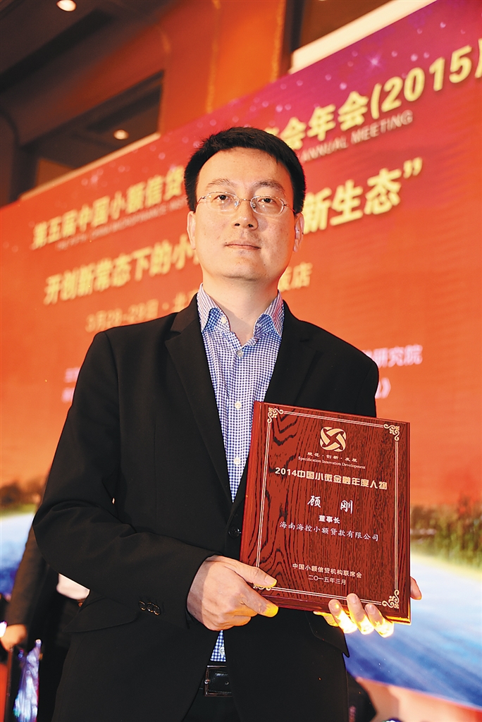 2015年3月28日,在第五届中国小额信贷机构联席年会上,海控小贷公司董事长顾刚凭借卓越的领导能力荣获“2014中国小微金融年度人物”称号,成为我省小额贷款行业获此殊荣的第一人。