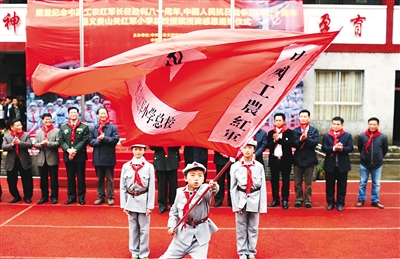3月29日,全国红军小学建设工程理事会在贵州遵义革命老区分别举行遵义娄山关红军小学总校和遵义习水杨得志红军小学授旗授牌捐赠仪式。 新华社发(刘长龙 摄)