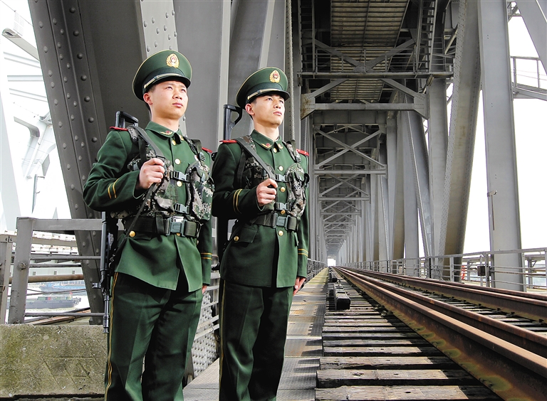 3月29日,武警战士在跨江松浦大桥上执勤。 1976年,在上海松江地区的黄浦江上,连接铁路金山支线的松浦大桥建成通车,这也是迄今为止上海黄浦江上唯一一座公路、铁路两用双层桥。从那时起,武警上海总队一支队官兵开始担负大桥守护任务。随着时代的发展,在紧邻大桥的东侧,一座崭新的铁路桥即将替代拥有40年历史的松浦大桥。一茬茬武警官兵历经40年的坚守,确保了大桥的安全,也见证了上海的飞速发展。