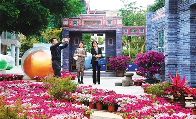 在博鳌亚洲论坛2015年年会期间,琼海旅游城市形象展在博鳌亚洲风情广场展出,吸引观者驻足观赏、拍照。