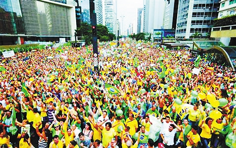 本月15日,巴西多个城市的居民走上街头表达不满。巴西军警提供的数据显示,这场示威遍布巴西全国25个州和巴西利亚联邦特区,参加人数超过100万。