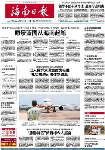 海南日报 头版 001 2015-03-311 2015年03月31日 星期二