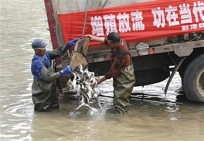 4月1日,工作人员在长江九江段附近水域投放大规格鱼种。 当日,珠江流域和长江葛洲坝以下至长江河口江段正式启动为期3个月的禁渔,标志着长江和珠江流域进入全面禁渔期。 据介绍,长江葛洲坝以上上游江段,从今年2月中旬已开始禁渔。禁渔期内,两江流域将禁止捕捞活动,并展开违法渔具和违法捕捞的执法行动。同时,为了保障专业渔民的利益,各地政府将给渔民发放一定生活补贴,以确保渔民生活不受禁渔影响。 新华社记者万象摄