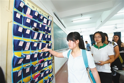 4月1日,为了让学生将更多精力放在课堂上,海南师范大学物理与电子工程学院对2014级学生实施“零手机”课堂,让学生将手机放进教室门上的收纳袋后以便认真听课。据了解,上课“人机分离”这种举措在国内如河北师范大学、扬州大学、西南大学、苏州大学、山东师范大学等高校已不鲜见,反响不错。目前,海南师范大学物理与电子工程学院在2014级的6个班、349名同学中进行“试点运行”,今后有可能会在全院范围进行推广。本报记者 张茂 摄