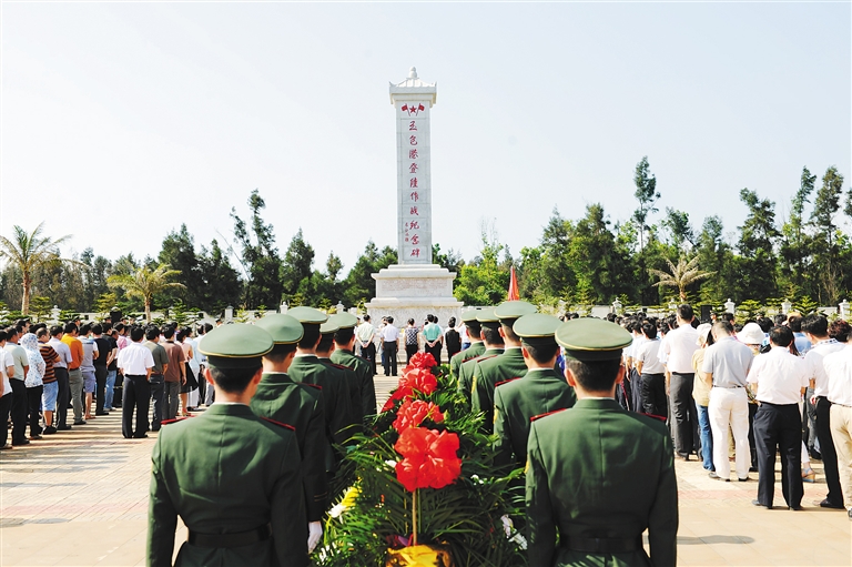 4月2日上午,10位琼崖纵队老战士代表及澄迈县委、县政府、机关干部、学生代表等千余人在澄迈县桥头镇玉包港登陆作战纪念园举行清明拜祭先烈活动。