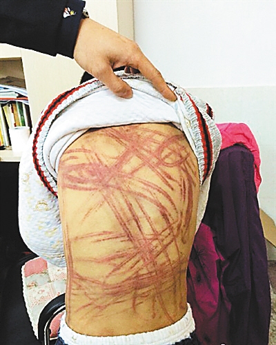 4日,一组男童被虐打的照片在网上疯传。照片显示,一名男童背部、手臂、腿上布满了伤痕,像是被鞭子抽过,脚也高高肿起。发照片的网友还配文字说明,男童于6岁被收养,父母为南京某区人。虐待行为是被学校老师发现的。