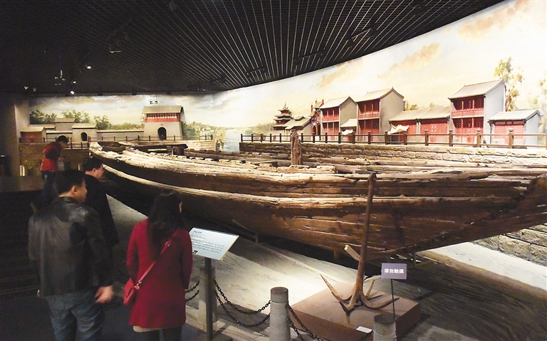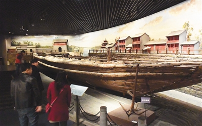 4月6日,济南市民在山东博物馆内观看明代漕船。 当日是周一,也是清明节小长假最后一天,山东博物馆改变平时周一闭馆的安排,小长假三天全部对外免费开放,吸引大量市民前来参观。 新华社记者