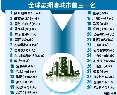 同时,全球拥堵前三十名的城市中,中国大陆有十个城市上榜,台北排名第11名。(来源:新华网)