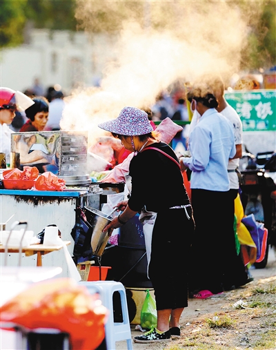 显而易见的地理优势令这里商机无限,一位摊贩说:“这里离蔬菜批发市场近,交通便利,附近又有居民区,早上又有大批接送孩子上学的家长,路边的生意肯定好过市场里面。”