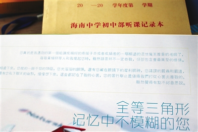 许曦庭去年是陈健科带的初三(8)班的一员,中考后父母给她转学去了北京。假期回来她特意做了一本纪念册送给陈健科老师,她在册子上写道:在这个陌生的学校里,面对着陌生的老师,总会想起您。想起您那时候在班里的训话,想起您眼中的恨铁不成钢。还记得以前老师总会拿“不成器”来批评班级里的那些不认真学习的同学,说他们是失败的,但是您却说我们的思维没有成熟,还没有成长起来。您还说,人各有志,也许在学习上不行,但是在其他方面却比别人强……