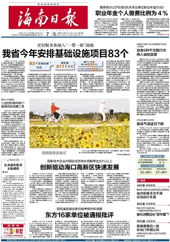 海南日报 头版 001 2015-04-071 2015年04月07日 星期二