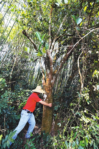 符锦琳所说的爬树摘果可不是普通的树普通的果。今年1月21日,海南大学胡新文教授课题组在进行“一村一品”种质资源调查过程中意外发现,符锦琳所说的油茶树初步推断距今至少有500年树龄。记者看到,这棵古油茶树高15.5米,树基径2.15米,冠幅约40平方米。而包括这棵树在内,这个地方共有16棵古油茶树。