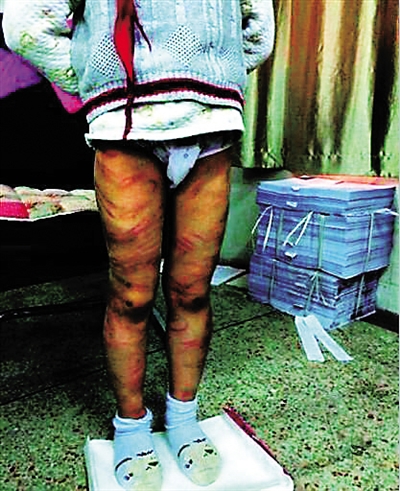警方介绍,经查,3月31日17时许,男童施某因未完成其养母李某布置的课外作业,遭到50岁的李某用抓痒耙、跳绳抽打及脚踩,致使施某双手、双脚、背部大面积出现红肿痕迹。经法医初步鉴定,已构成轻伤。