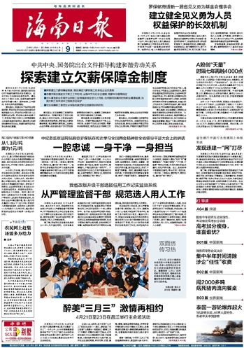 海南日报 头版 001 2015-04-091 2015年04月09日 星期四