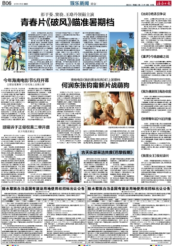 海南日报 娱乐新闻综合 014 2015-04-091 2015年04月09日 星期四