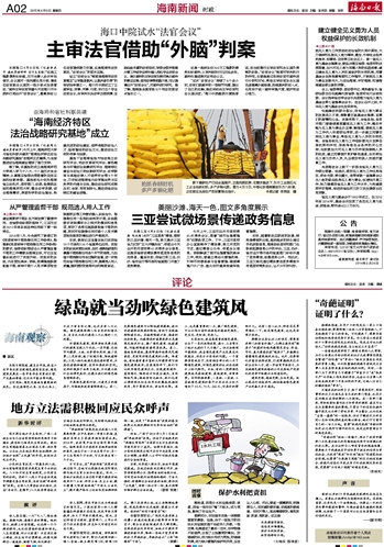 海南日报 海南新闻时政 002 2015-04-091 2015年04月09日 星期四